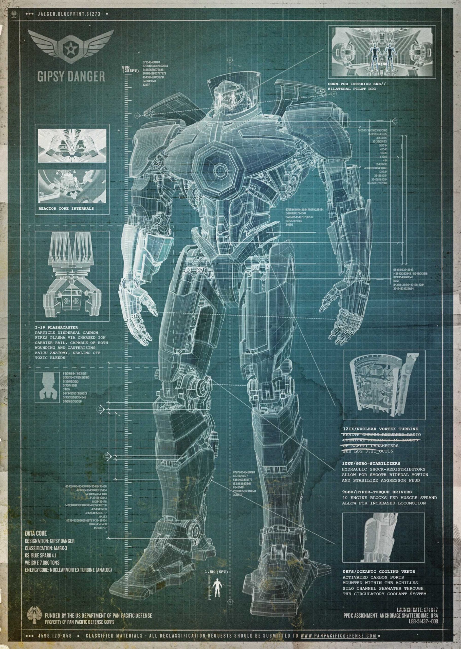 O mais legal de toda a campanha são os esquemas gráficos dos Jaeger que lutarão contra os Kaiju, primeiramente temos o norte americano Gipsy Danger, o russo Cherno Alpha, o Jaeger japonês Coyote Tango e por último o australiano Striker Eureka.