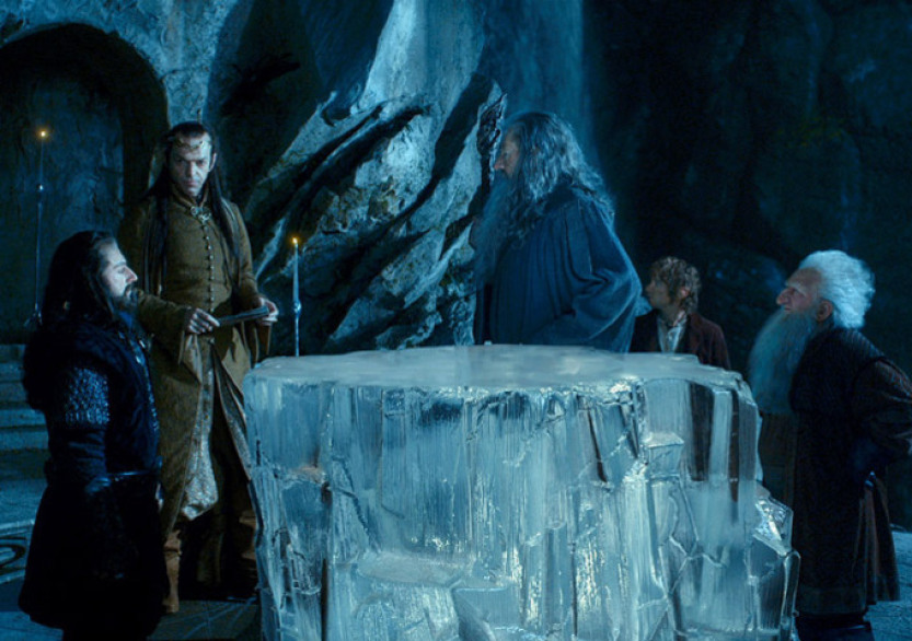 Numa dessas cenas temos um novo flashback agora narrado por Balin e que nos conta um pouco mais da história dos anões após serem expulsos de seu reino, lá é apresentado o vilão Azog, um personagem que só é mencionado apenas no final do livro mas Peter Jackson e seus roteiristas conseguiram anexar ao enredo do filme, assim como diversos escritos nos apêndices apresentados ao final do livro O Retorno do Rei que permitiu uma imersão maior à história e com isso um filme mais rico em detalhes e explicações.