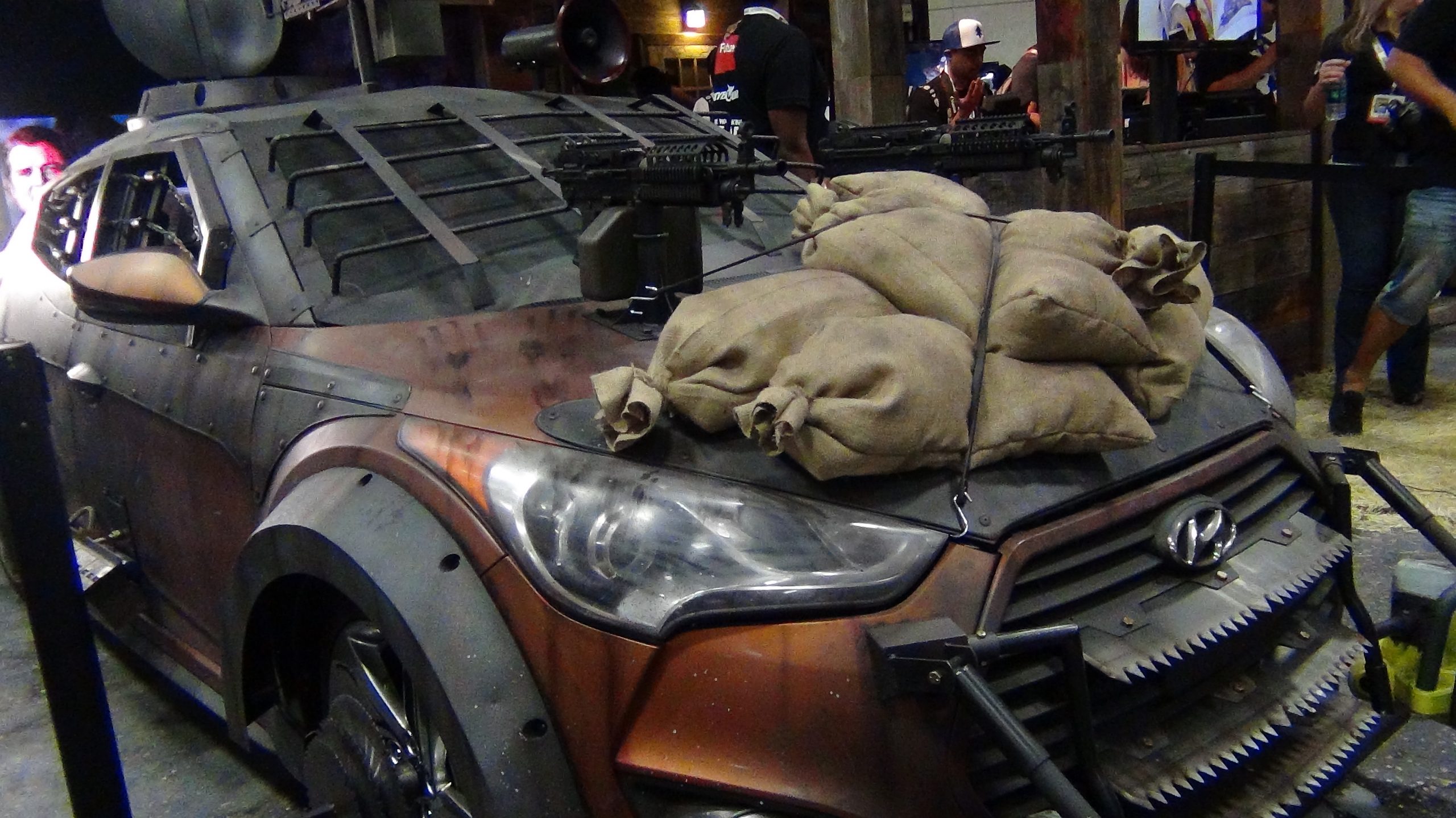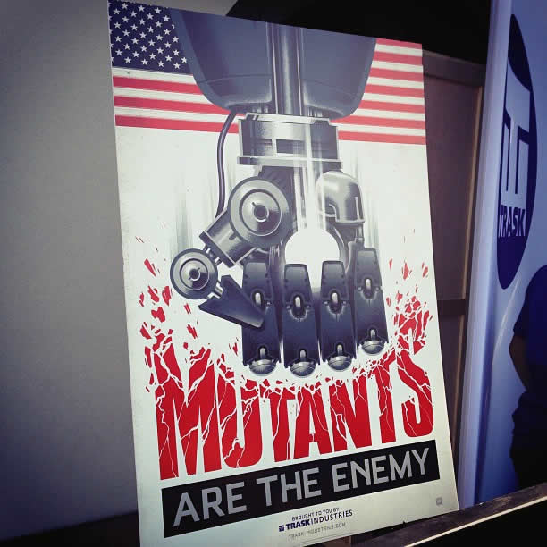 Para começar em um estande da fictícia Trask Industries (que faz parte do universo dos X-Men) é possível ver a cabeça dos Sentinelas, gigantescos robôs caçadores de mutantes e que serão um grande desafio para os heróis no próximo X-Men Dias de Um Futuro Esquecido.