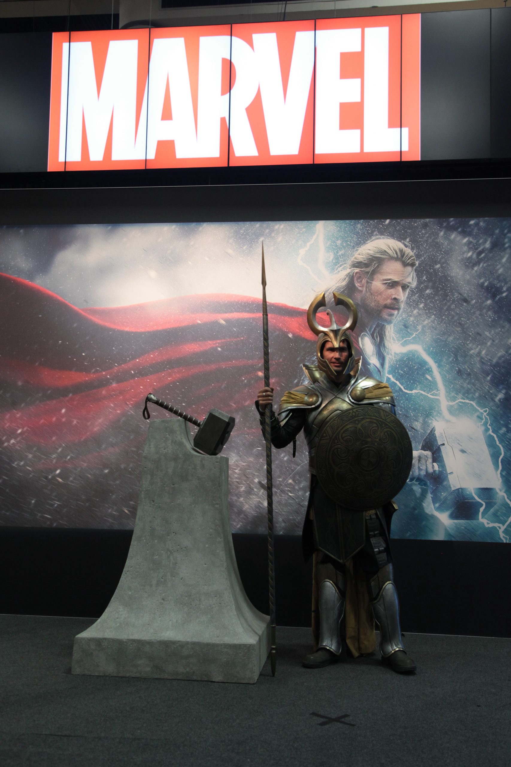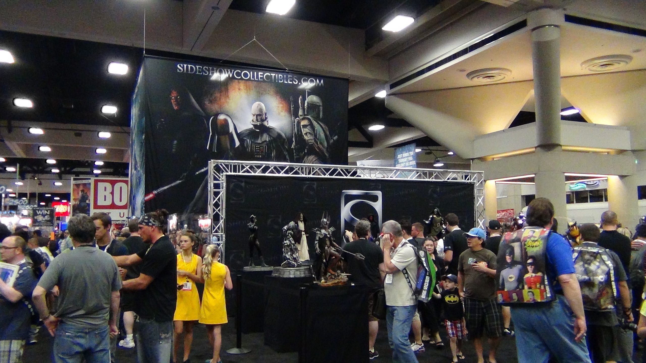 Para começar em um estande da fictícia Trask Industries (que faz parte do universo dos X-Men) é possível ver a cabeça dos Sentinelas, gigantescos robôs caçadores de mutantes e que serão um grande desafio para os heróis no próximo X-Men Dias de Um Futuro Esquecido.