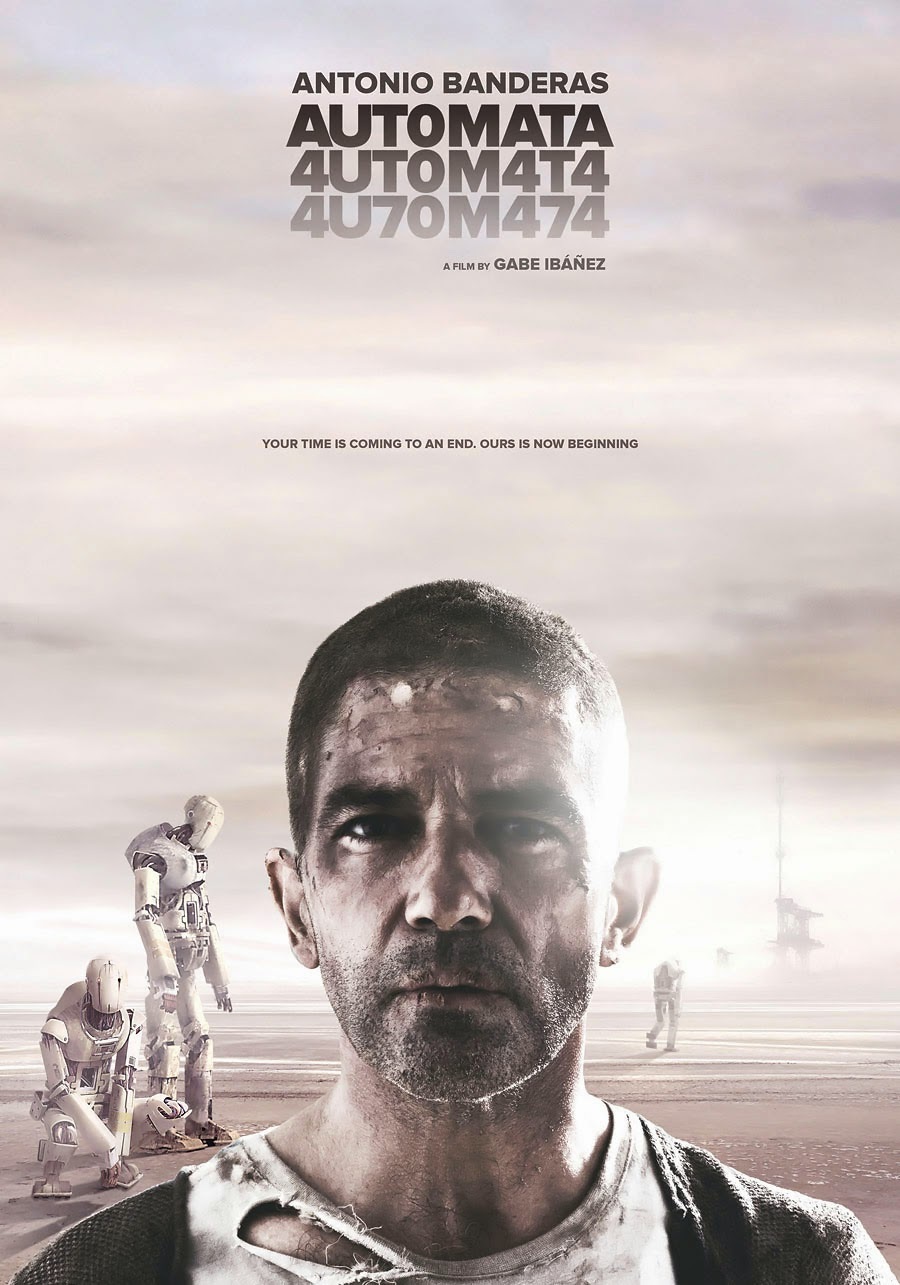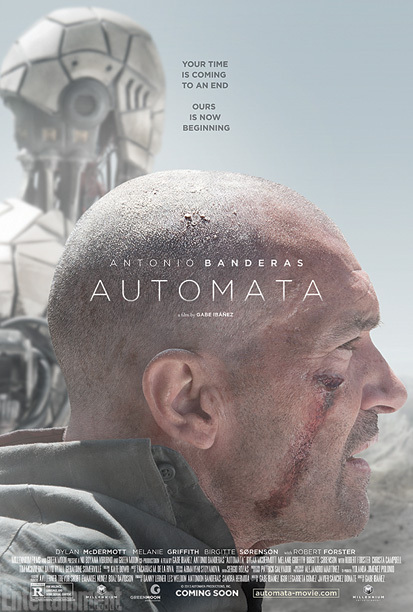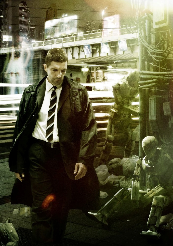 Vários cartazes da ficção “AUTOMATA” com Antonio Bandeiras